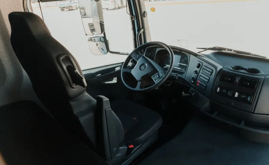 El Axor llega al mercado con dos opciones de cabina, ambas con suspensión neumática de serie: Dormitorio Techo Elevado y Dormitorio Techo Bajo, garantizando un excelente estándar de confort para el conductor.
