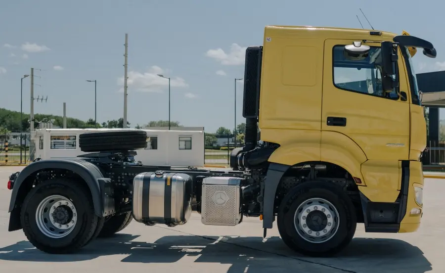 Con un chasis similar al del Actros, el Axor lleva el ADN de robustez de los camiones extrapesados Mercedes-Benz. Además, destaca por su mayor capacidad de carga, con una PBTC (Peso Bruto Total Combinado) de hasta 62 toneladas.