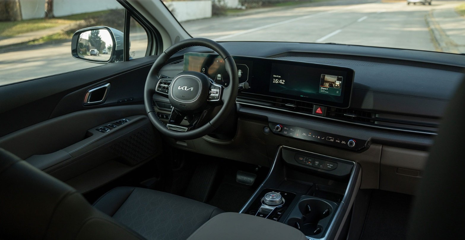 Al ingresar al vehículo se puede observar la incorporación de detalles futuristas a un diseño moderno y espacioso, en donde se destaca la nueva pantalla panorámica curva de 12,3” + 12,3” integrada bajo un único panel. Da un paso adelante al ofrecer conectividad inalámbrica simultánea para dos celulares, compatible con Android Auto y Apple CarPlay, y siete puertos USB-C distribuidos en la cabina. Además, cuenta con doble techo solar, tapizados de cuero ecológico, con butacas delanteras calefaccionadas y con ajuste eléctrico que ofrecen una experiencia de primera clase. Adicionalmente, Carnival ahora incorpora la nueva llave inteligente de Kia, con diseño más sofisticado, que permite al usuario accionar las puertas laterales y portón trasero eléctricos, los alzacristales e inclusive encender el vehículo, de manera remota.