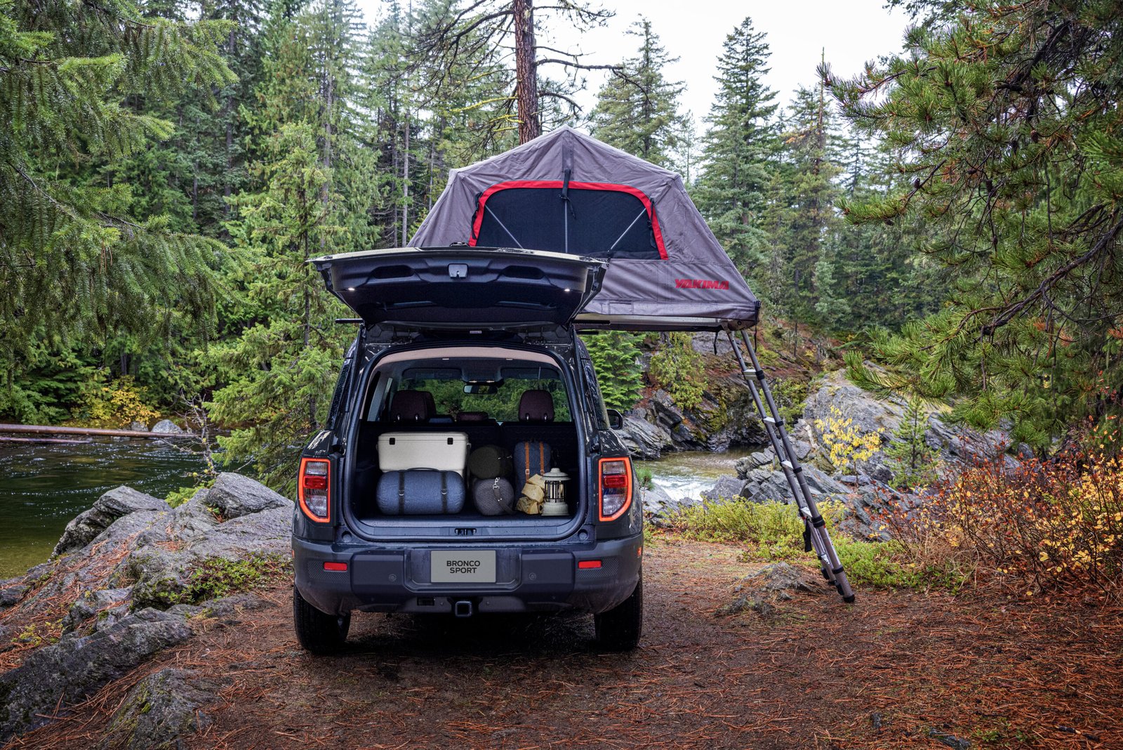 Concebida para la aventura también desde el interior, la Nueva Bronco Sport brinda además soluciones inteligentes en cada rincón de su habitáculo. El diseño interior muestra líneas rectas, y materiales resistentes pensados para la aventura. Hay soluciones de almacenamiento funcional por toda la cabina: bolsillos con cierre en los respaldos delanteros, múltiples portavasos y hasta una guantera oculta debajo del asiento trasero. El portón del baúl ofrece luces direccionables, pensadas para iluminar los alrededores durante la noche, cobertores de goma removibles, diversos ganchos portaobjetos para sostener bolsas, bandeja de carga de baúl modular y configurable que facilitan el acceso a los elementos esenciales para cualquier travesía. Pensando en todos los detalles, la Bronco Sport ofrece hasta un abridor de botellas integrado a la carrocería. También cuenta con asientos traseros rebatibles 70/30 que permiten ampliar el espacio de carga, y en el caso de la versión Badlands, el piso del habitáculo es de goma lavable, para facilitar la limpieza después de actividades al aire libre. Además, ofrece tomas de corriente de tipo domiciliarias en las plazas traseras y en el baúl.