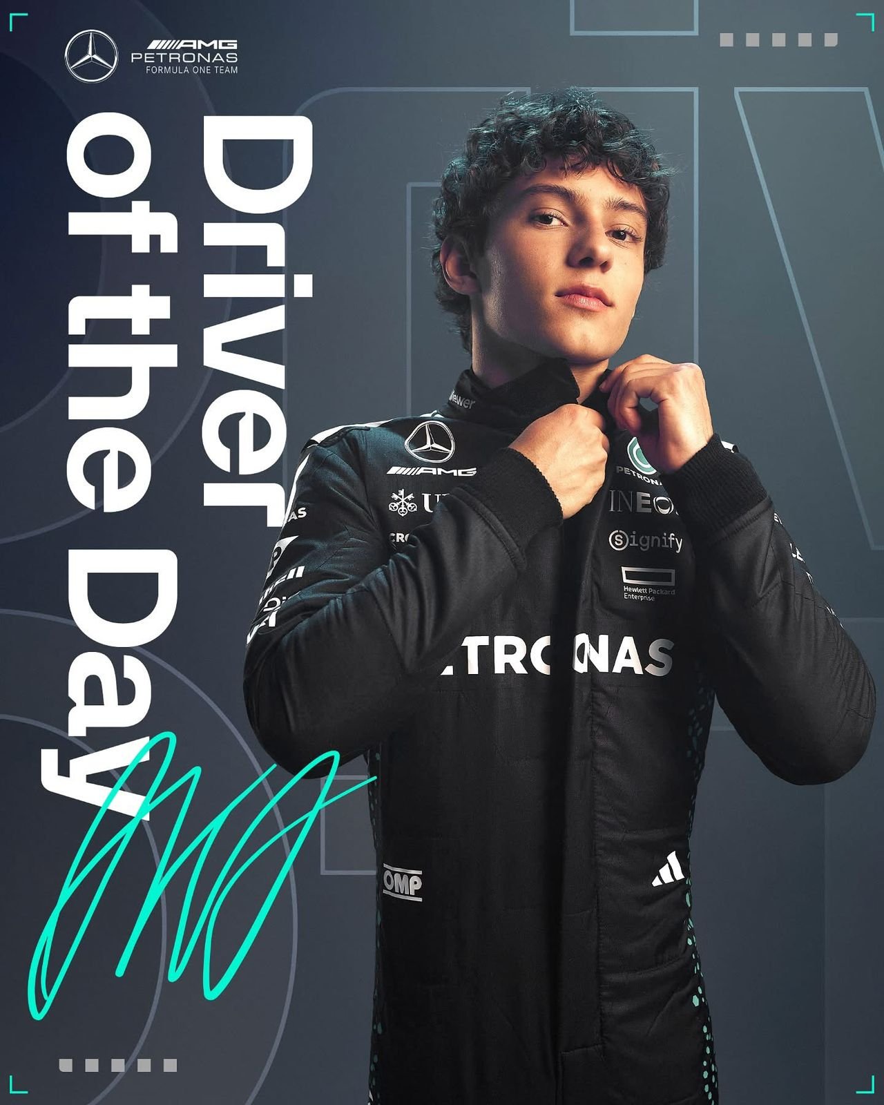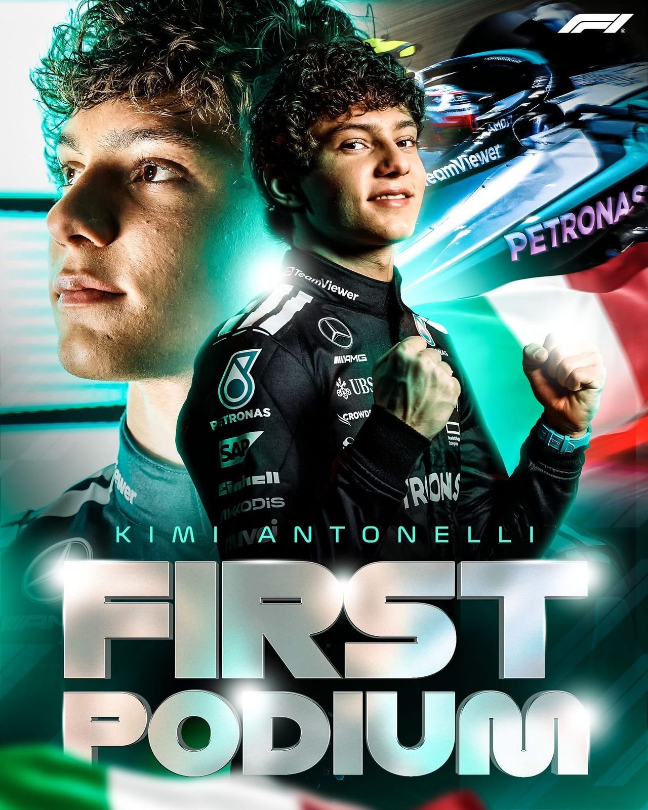 Su escolta fue Max Verstappen con Red Bull , demostrando nuevamente sus cualidades conductivas y descontando valiosos puntos en la lucha por el campeonato , Andrea Kimi Antonelli el italiano de 18 años consiguió su primer podio en la categoría , convirtiéndose en el tercer piloto mas joven en conseguirlo luego del mismísimo Verstappen y Stroll.