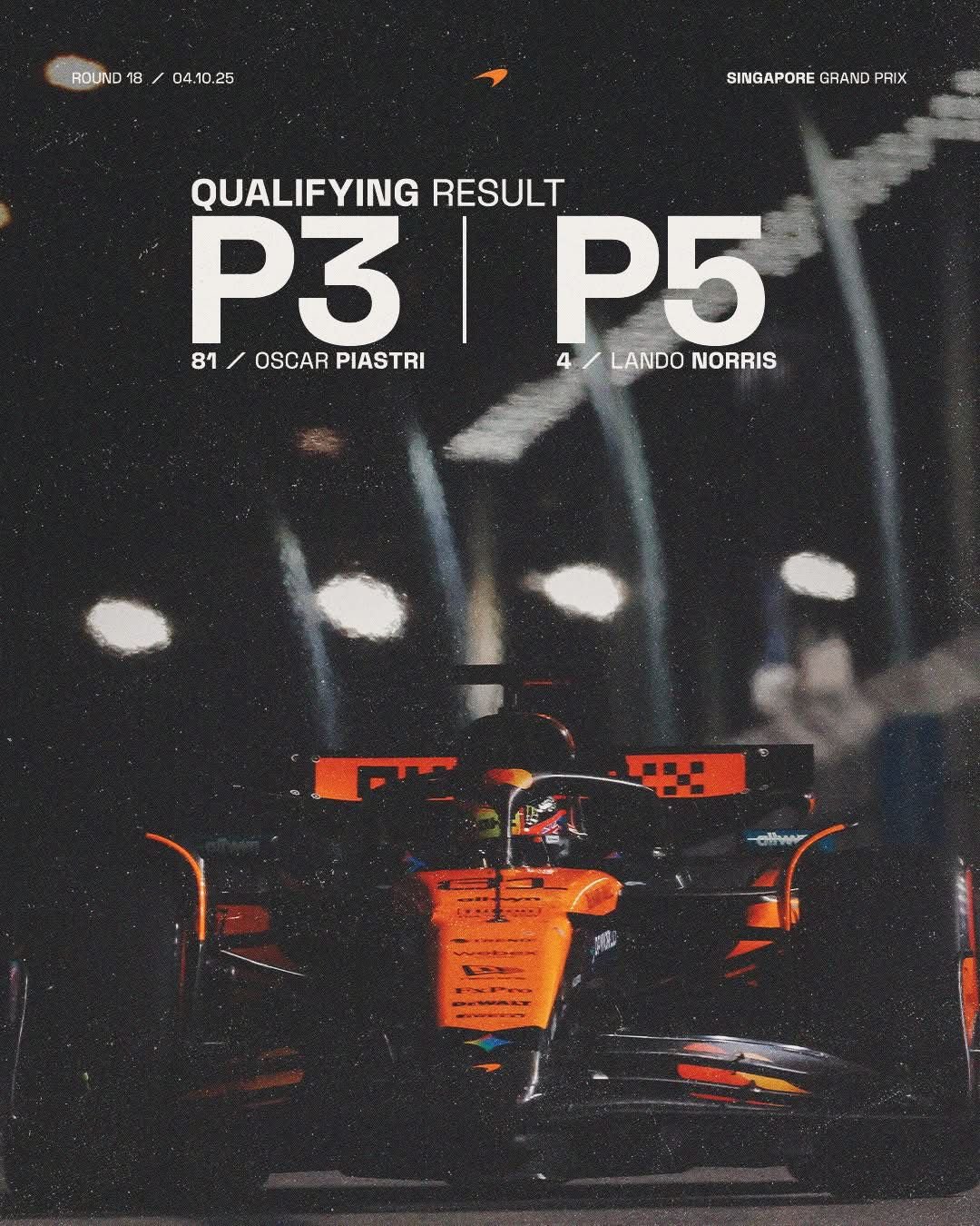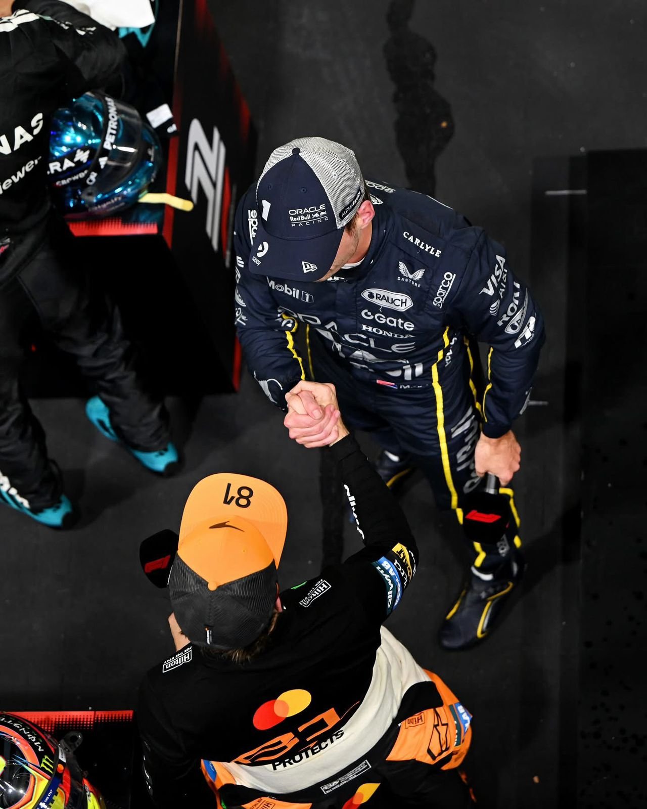Verstappen (Red Bull) debió resignarse al 2° lugar en el podio , mientras que Norris y Piastri (McLaren) al ver que no podían pelear por la punta de la carrera priorizaron sumar , y así darle el 10°título de Constructores a la escudería inglesa.