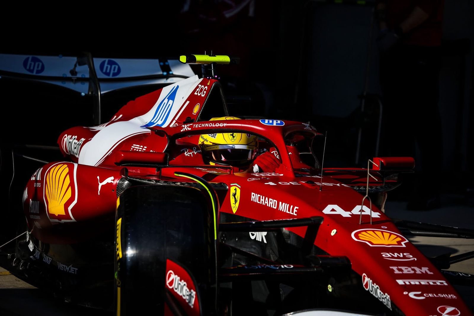 Lo positivo de Ferrari, fue la pole y victoria de Lewis Hamilton en la 1°carrera Sprint de la temporada a 19 giros .