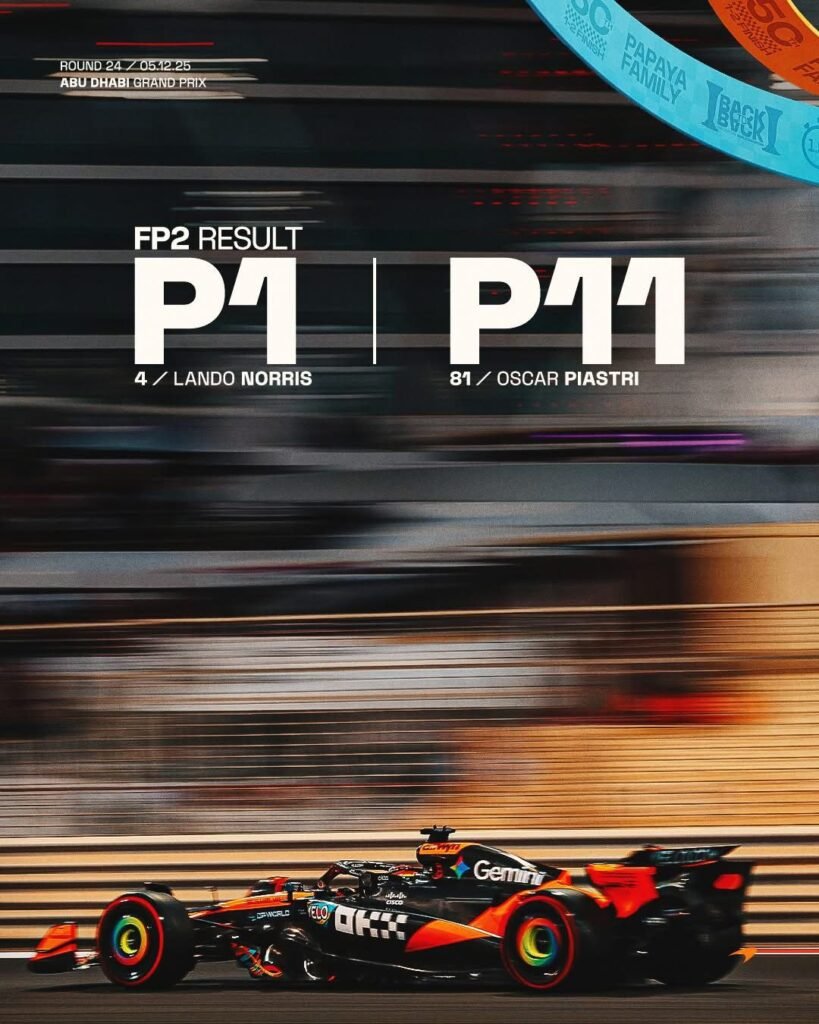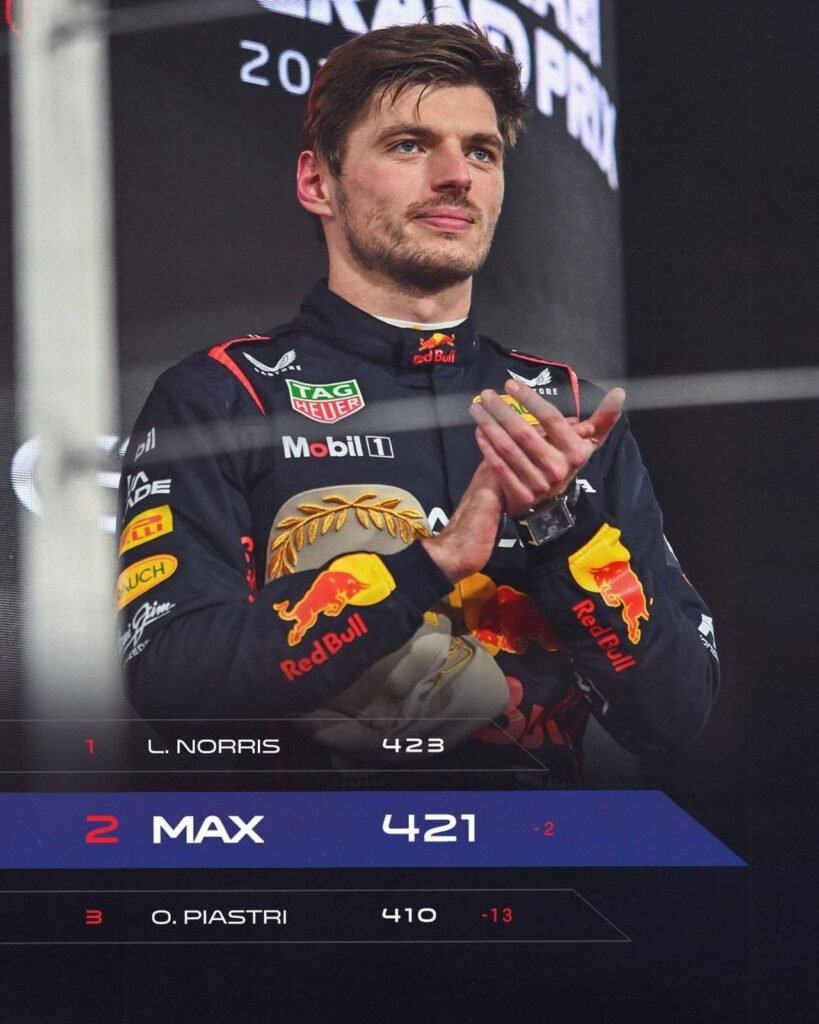 Verstappen hizo lo que debía, consiguió la pole y ganó el GP de Abu Dabi con autoridad, pero no le alcanzó haber ganado 8 GP en el año (Piastri y Norris ganaron 7 cada uno y los 2 restantes, Russell); el campeonato se definió a favor del 3.° en la pista, Lando Norris (McLaren), por solo 2 puntos después de recorrer miles de km. , divididos en 24 GP y en 4 continentes. 2.° Se ubicó Oscar Piastri (McLaren).